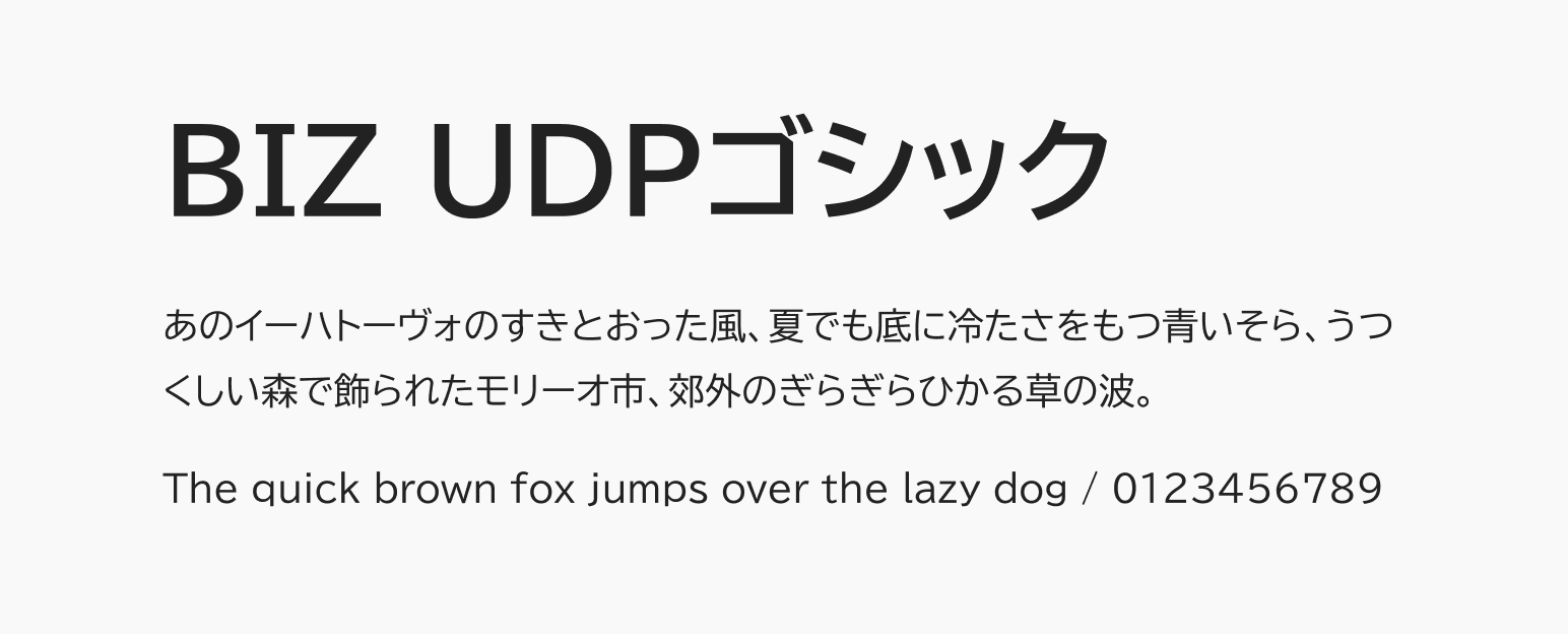 英数字が混在することが多かったり、テキストが長文になることが想定される場面ではBIZ UDPゴシックの方を使うと可読性のさらなる向上が期待できそうです。