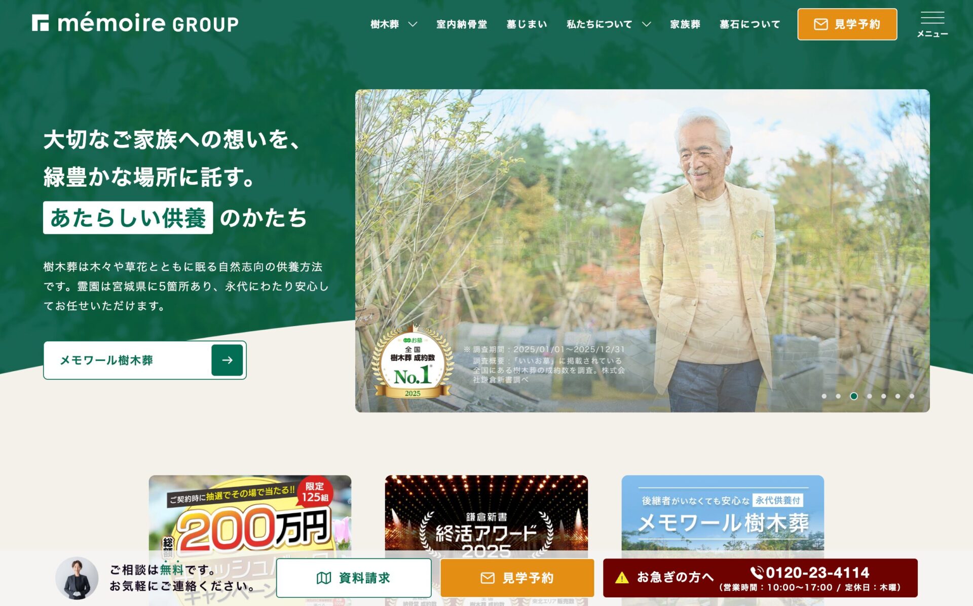 宮城県利府町の墓石・樹木葬など多数の終活サービスを展開している「メモワール石材株式会社」のウェブサイトリニューアルを担当いたしました。