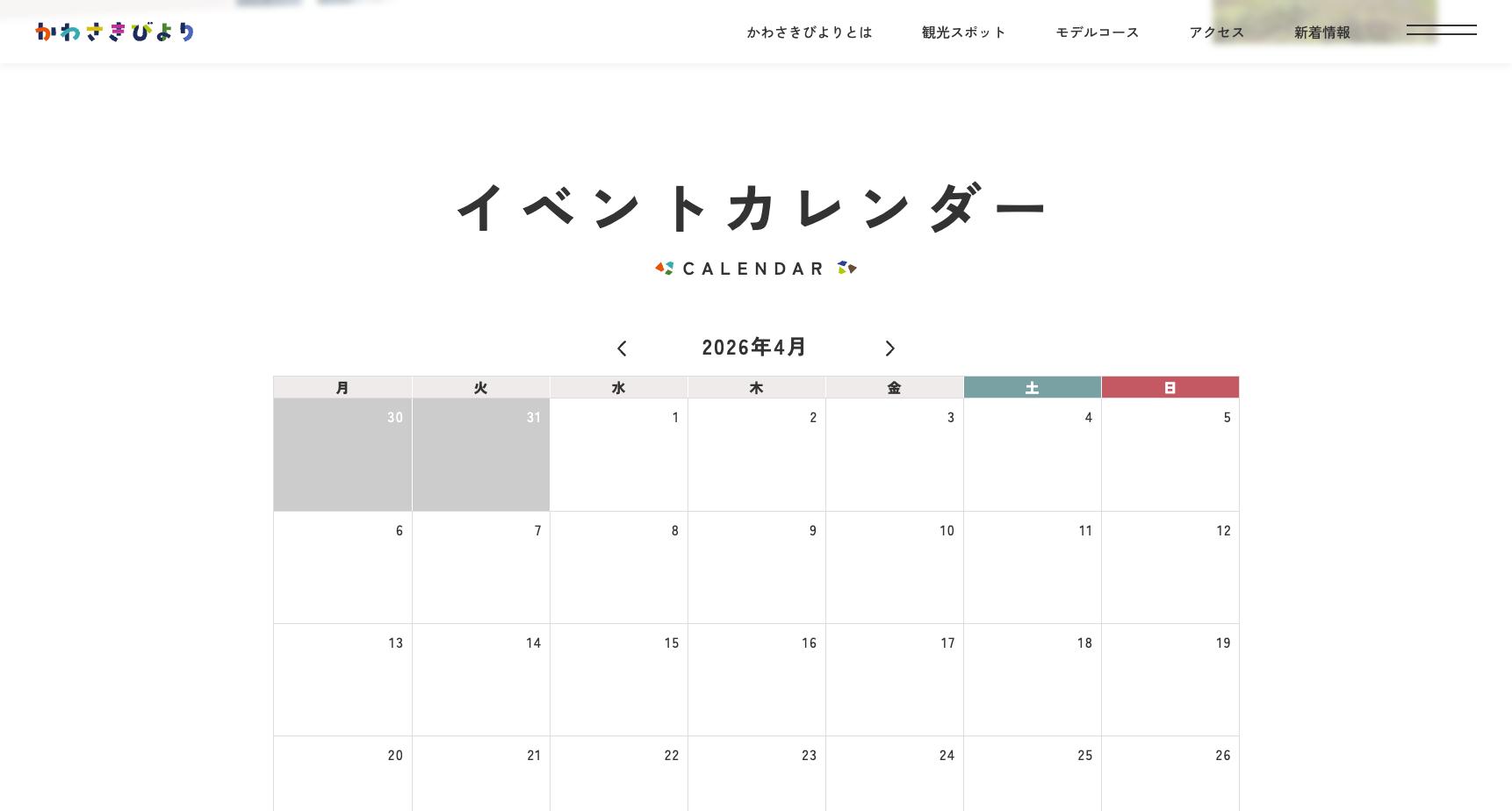 2, 川崎町で行われるイベントを網羅できる「イベントカレンダー」の設置