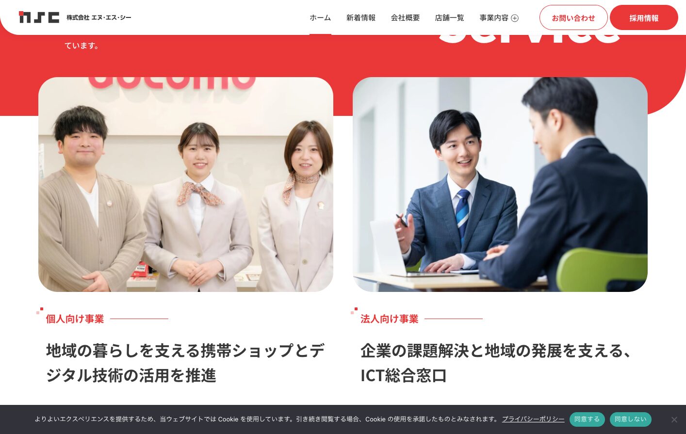 福島県会津若松市の通信キャリアショップ運営・DXソリューション等業務を行っている「株式会社 エヌ・エス・シー」のウェブサイトリニューアルを担当いたしました。